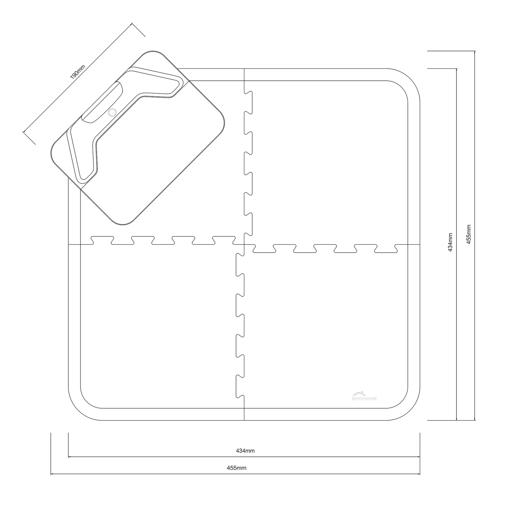 - Kotiaita (silikonimatto, joka toimii "aitana" rajaten EMO:n liikkumista)